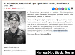 Нещодавно з'явився ще один – казак так званого Севастопольського казачого округу Віталій Дрьомін. Дрьомін родом з Уфи, жив у Севастополі, воювати пішов у квітні.